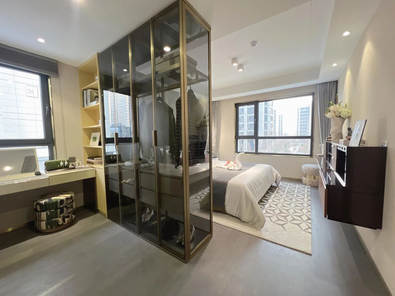 褪去一天的疲惫,步入主卧套房。独立卫浴间里温热的水流舒缓紧绷的神经;步入式衣帽间内衣物配饰整齐排列,轻松挑选明日穿搭,让每一次出门都从容优雅。南向观景飘窗,独属二人的浪漫天地,或依偎着看城市夜景,或一部电视剧伴随入眠,让幸福在专属空间里悄然沉淀、无限延伸。