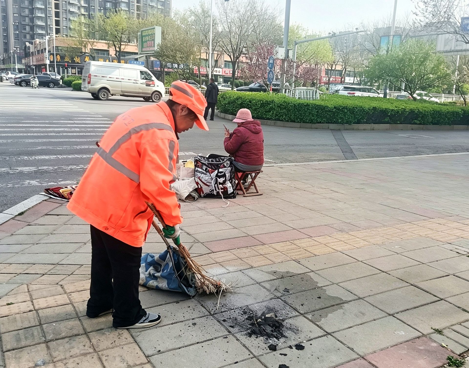 人工保洁+机械冲洗,末端精细治理确保环境洁净。针对巡查中发现的祭祀残留灰烬、路面污渍等问题,环卫中心严格落实“双保洁”快速处置机制,采用“人工+机械”协同作业模式,实现路面污染彻底清理、不留死角。一旦发现祭祀残留灰烬、垃圾杂物,保洁人员第一时间赶赴现场,对残留灰烬、祭祀废弃物进行彻底清扫,确保零散垃圾、灰烬清理到位;随后,出动污渍清除机等专业设备,对焚烧区域及周边路面进行深度冲洗,强力去除路面残留的污渍、焦痕,恢复路面整洁原貌,切实做到污染随时清理、路面洁净无残留。
