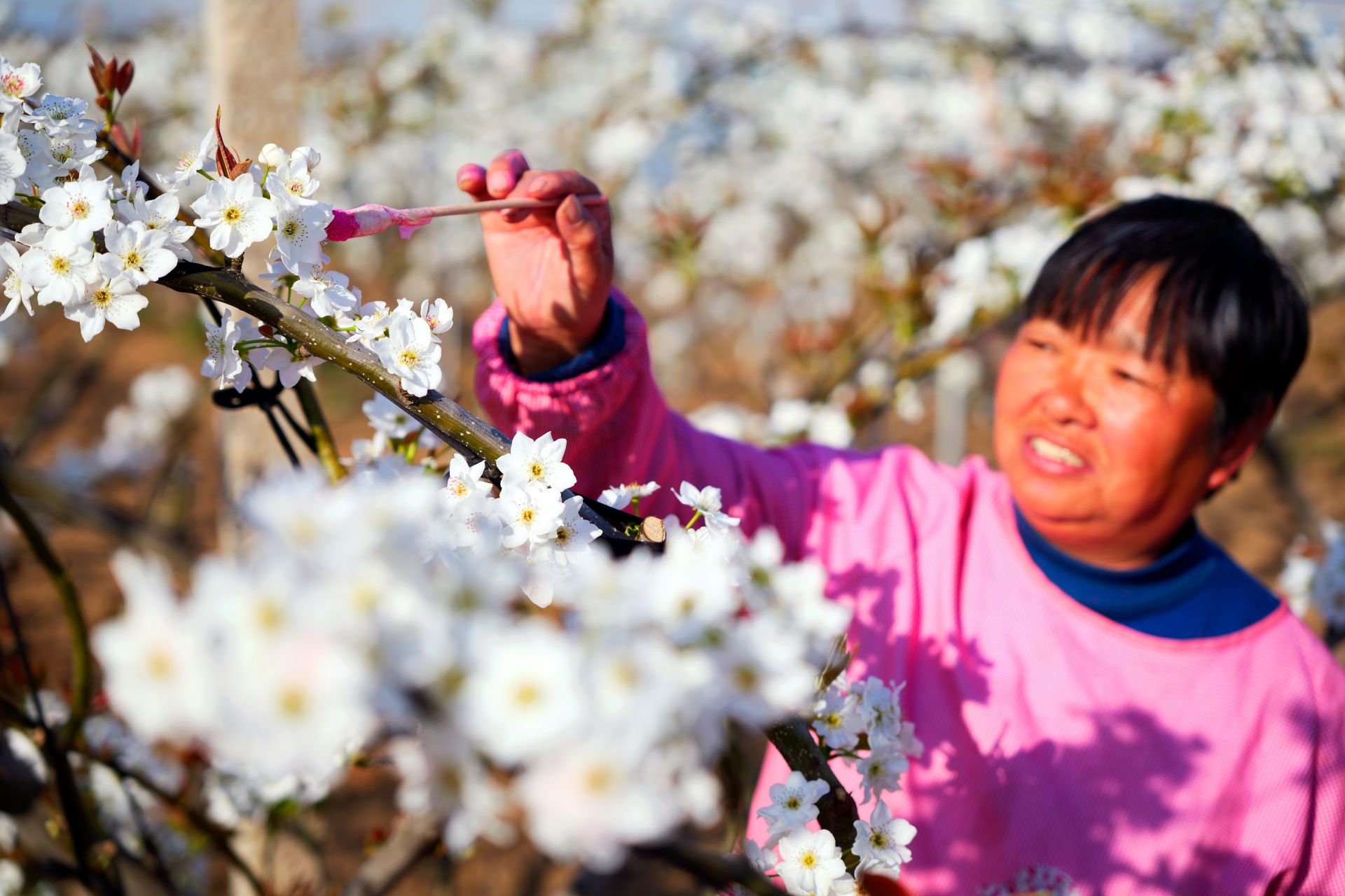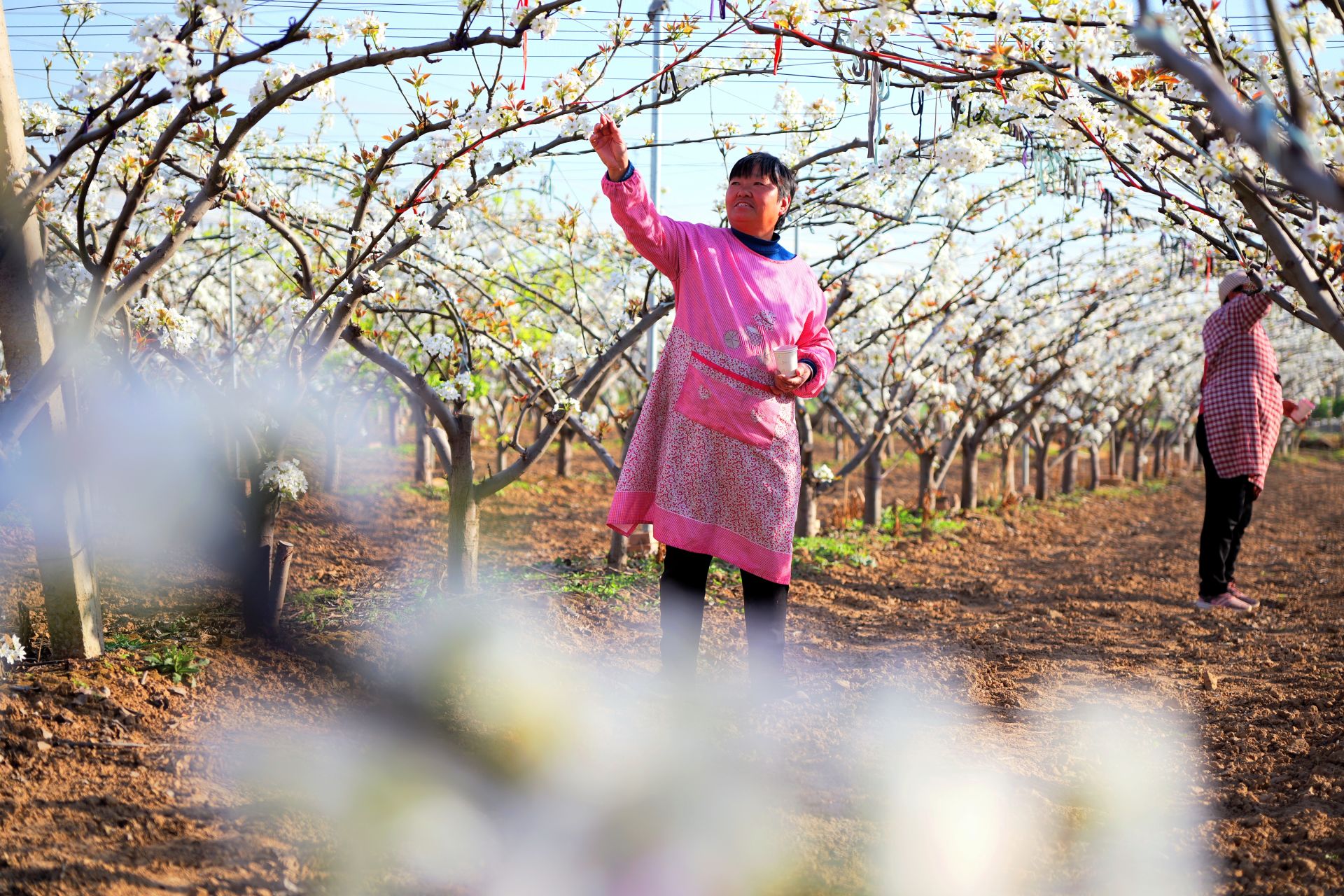 春风送暖,梨花似雪。眼下正值秋月梨树盛花期,也是人工授粉的“黄金窗口期”。在禹城市房寺镇“两河润禹”衔接乡村振兴集中推进区孙延村的秋月梨梨园里,繁花满枝、清香四溢,果农们全家齐上阵,抢抓晴好天气开展人工授粉,田间地头一派繁忙劳作景象。
