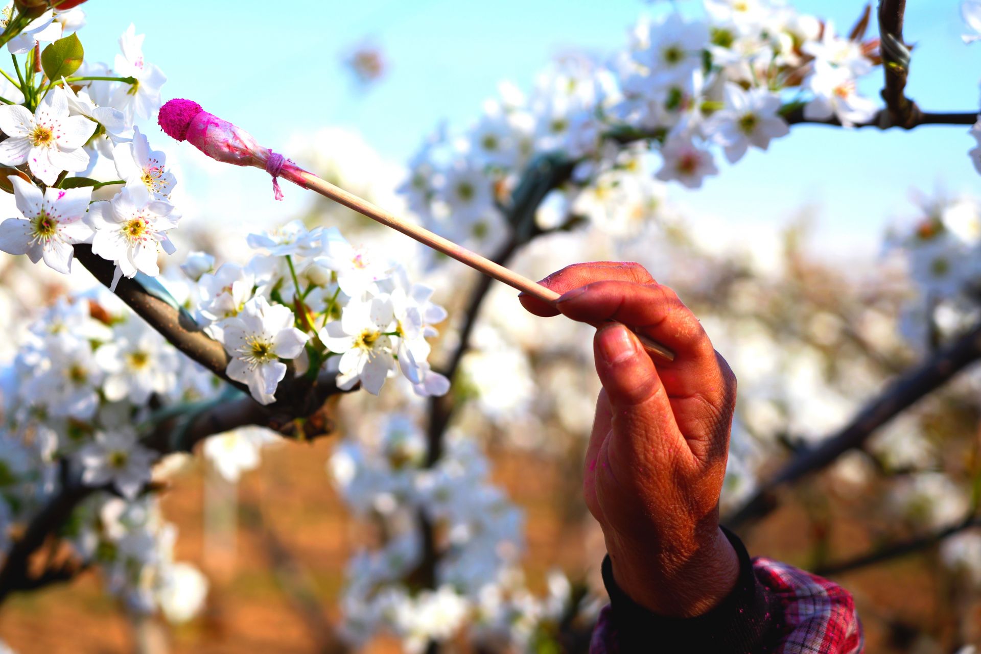 近日,走进房寺镇家宜家庭农场秋月梨梨园,只见一朵朵洁白梨花竞相绽放,果农们手持授粉工具,穿梭于梨园行间,细心为梨花授粉,每一次精准操作,都为秋日硕果累累埋下伏笔。人工授粉不仅能有效提高坐果率,更能提升果实品质,为丰产增收筑牢根基。