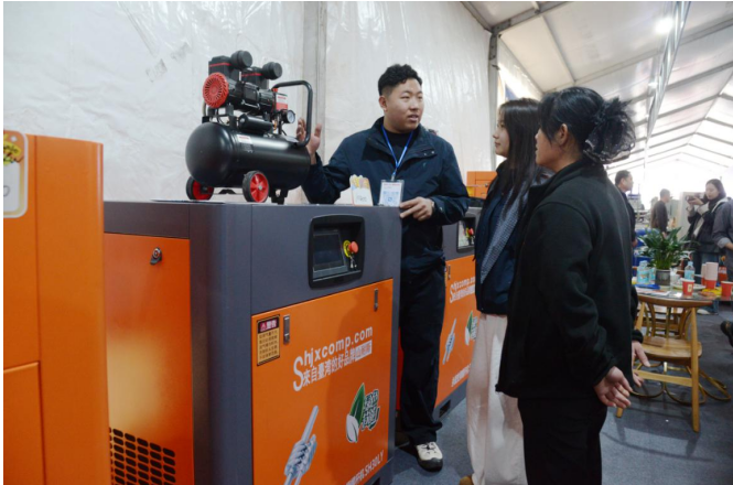 在木工机械展区,宁津县北辰数控有限公司自主研发出全国首台四通道五轴数控机械,可大幅减少模具用量,实现生产成本降低与生产效能提升的双重突破。宁津亿达空压机4S店销售总监张海波介绍道:“我们生产的水平双级螺杆空气压缩机,广泛应用于木器、五金、化工等多领域,较传统空压机节能30%。”