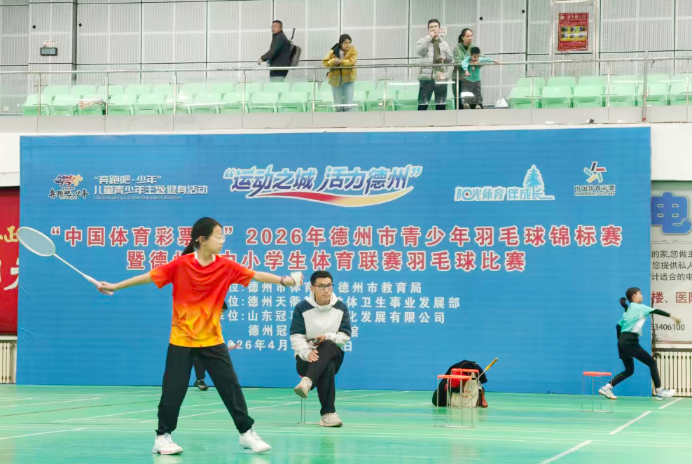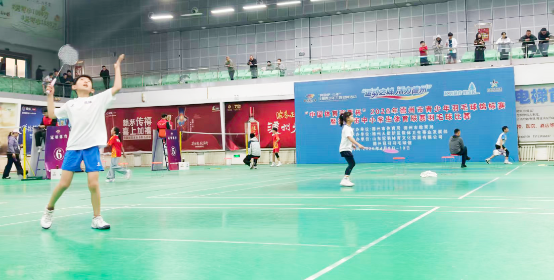 4月9日至10日,“中国体育彩票杯”2026年德州市中小学生体育联赛羽毛球比赛在德州天衢新区冠羽羽毛球馆举行,来自全市的300余名中小学生运动员同场竞技。