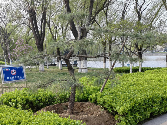 结合园区整体布局,遵循“因树造型、点景点睛”的原则,对黑松进行合理移栽,进一步优化植株空间分布,有效解决了树木过密、通风透光不良等问题,为绿植生长创造了更加健康舒适的环境。