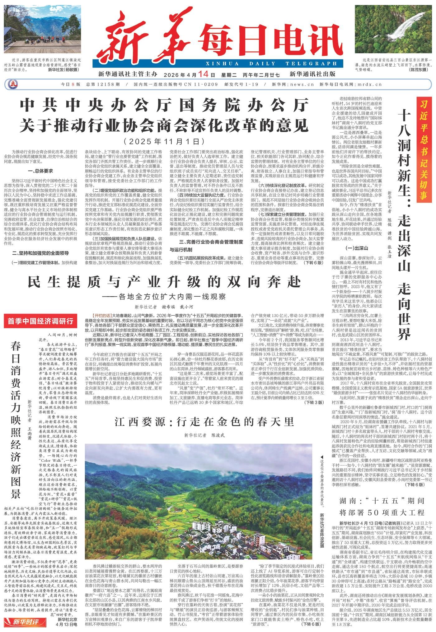 【开栏的话】大地春潮起,山河气象新。2026年一季度作为“十五五”开局起步的关键首季,是稳定全年发展预期、夯实长远发展基础的重要时段。在以习近平同志为核心的党中央坚强领导下,各地各部门干部群众坚定信心、乘势而上,扎实推动高质量发展,进一步全面深化改革开放,以开局即冲刺、起步即攻坚的姿态做好各项工作,力求实绩实效。
