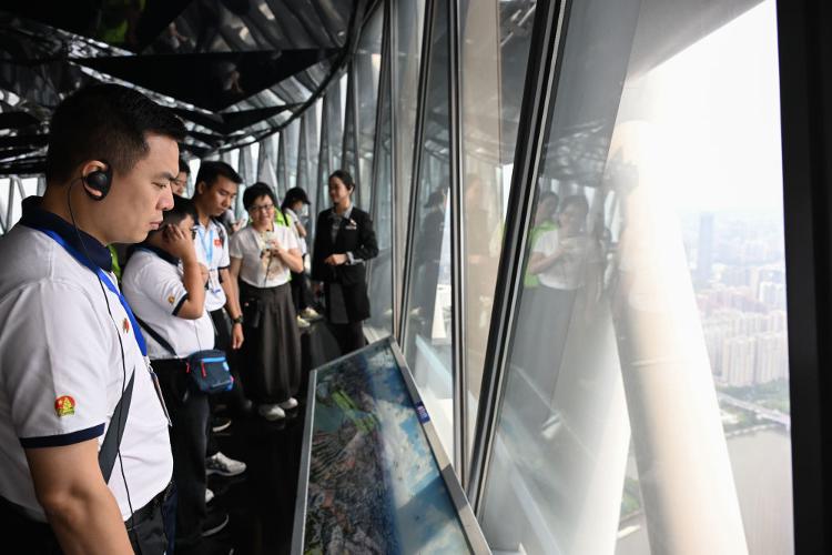 4月13日,越南青少年在广州塔了解广州城市建设情况。