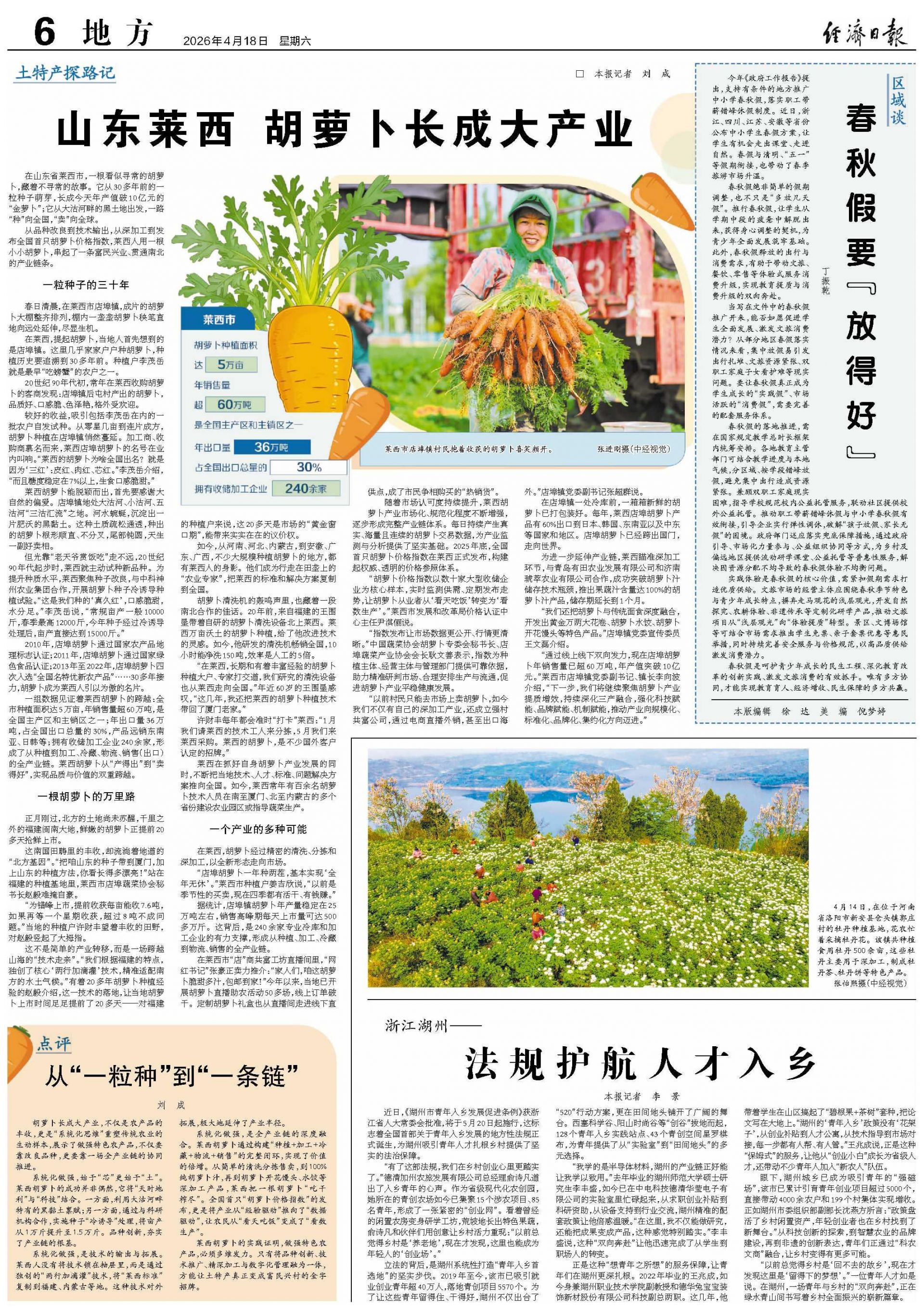 在山东省莱西市,一根看似寻常的胡萝卜,藏着不寻常的故事。它从30多年前的一粒种子萌芽,长成今天年产值破10亿元的“金萝卜”;它从大沽河畔的黑土地出发,一路“种”向全国,“卖”向全球。