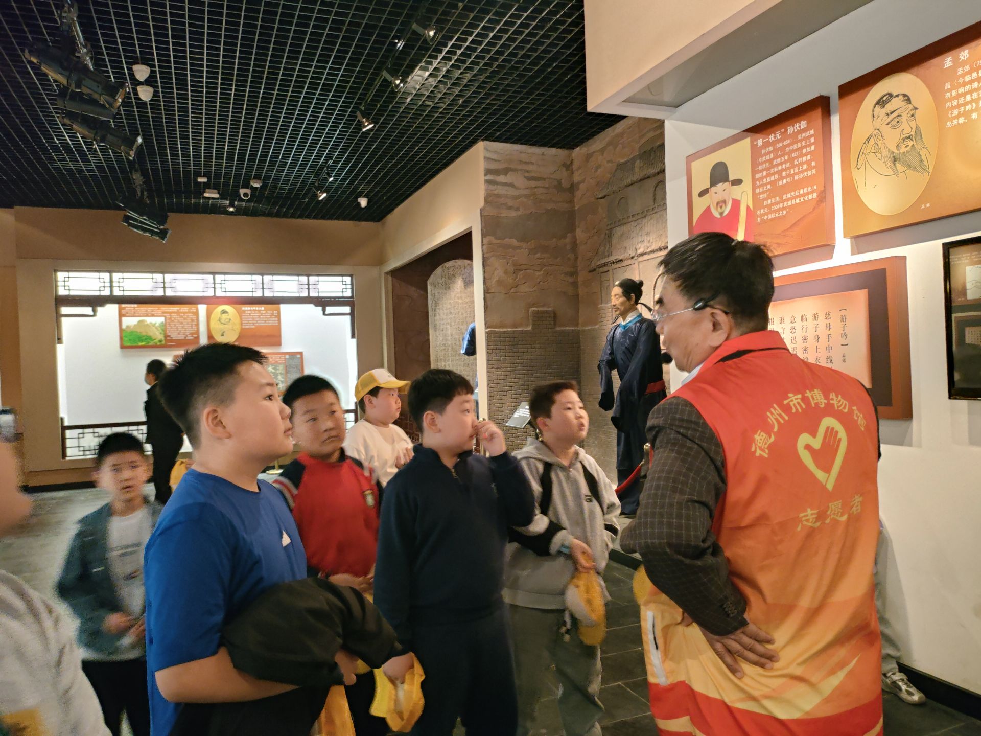 研学首站,全体师生走进德州市博物馆。孩子们走进德州市博物馆,开启一场和历史的跨时空对话。讲解员化身“时光向导”,把文物背后沉睡千年的德州故事讲得鲜活生动。孩子们认真参观各类历史文物,深入了解德州悠久历史与人文底蕴。场馆同步开展文物寻宝、特色集章打卡互动活动,大家按照任务清单探寻历史展品、集齐文创纪念印章,在沉浸式体验中感悟家乡文化魅力,厚植家国情怀与文化自信。