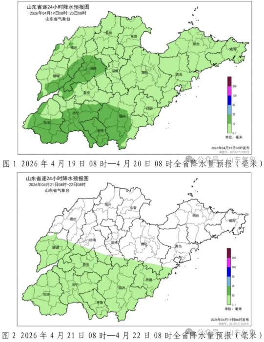 19日白天到夜间,鲁南和鲁中地区天气晴转阴有小雨部分地区中雨并伴有雷电,其他地区天气晴转阴有雷雨或阵雨;南部沿海地区19日早晨到上午有雾或轻雾。滨州、东营、鲁中山区和半岛地区南风4~5级阵风6~7级转北风5~6级阵风7~8级,其他地区南风3~4级转北风4~5级阵风6~7级,雷雨阵风7~9级。夜间最低气温:鲁西北和鲁中山区8℃左右,其他地区10℃左右。最高气温:滨州、东营、淄博和潍坊29℃左右,南部沿海地区22℃左右,其他地区27℃左右。