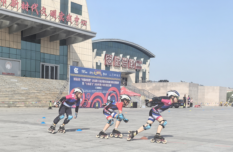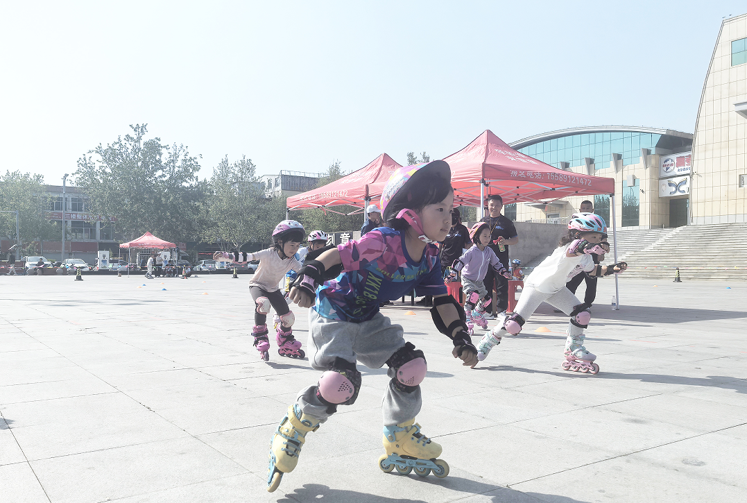 4月18日,好运山东“中国体育彩票”山东省第十六届全民健身运动会魅力城市轮滑邀请赛(乐陵赛区)在乐陵开赛。来自周边县(市、区)的近100名轮滑健儿齐聚乐陵。