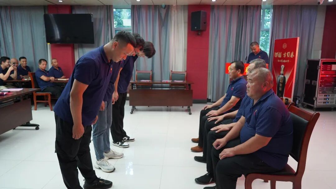 2025年8月,“青蓝工程”拜师仪式上,12名徒弟以传统礼仪向10位师傅行三拜之礼,现场签订《师带徒结对约定书》。老员工带新员工,骨干带班组,酿酒技艺就这样一代一代往下传。2025年以来,生产管理部已自主组织技能考核14次,“以赛代练、以考促学”蔚然成风。