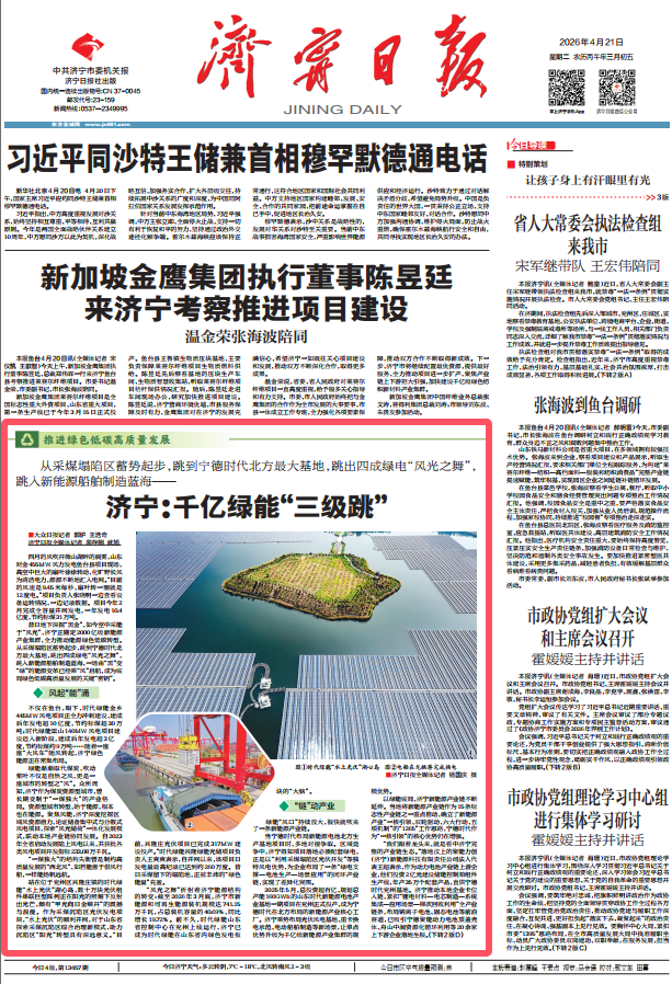 昔日地下掘“黑金”,今朝“风光”储绿能。从采煤塌陷区蓄势起步,跳到宁德时代北方最大基地,跳起四成绿电“风光之舞”,跳入新能源船舶制造蓝海,如今,济宁正锚定2000亿级新能源产业集群,全力推动能源绿色低碳转型。