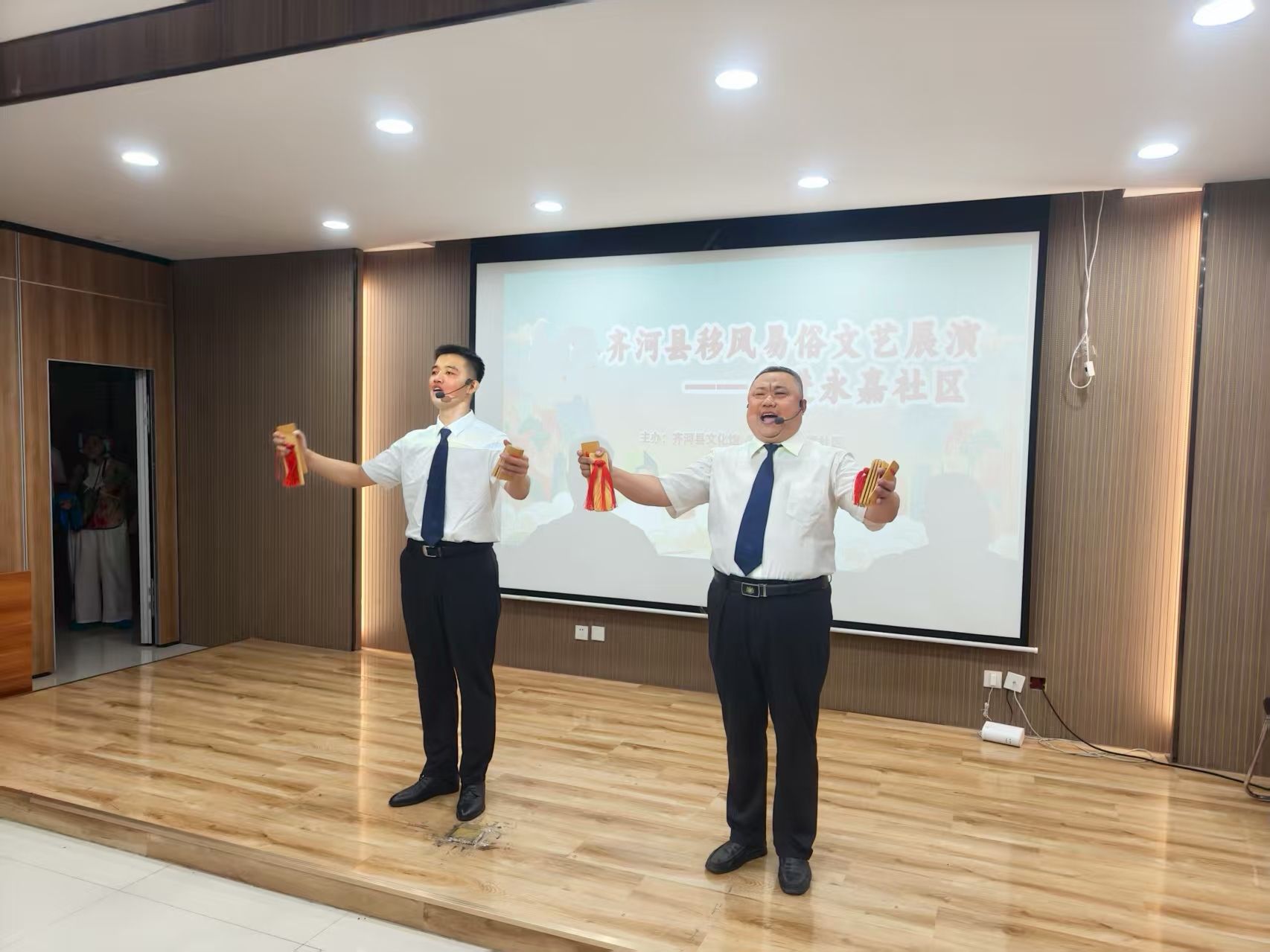 近日,齐河县胡官屯镇大李庄村新时代文明实践广场上热闹非凡,一场以“深化移风易俗 倡树文明新风”为主题的文艺展演精彩上演。村民们自编自导自演的各类文艺节目,用通俗易懂、喜闻乐见的形式,传递文明新风,让移风易俗理念深入人心,营造人人讲文明、户户树新风的浓厚乡村氛围。