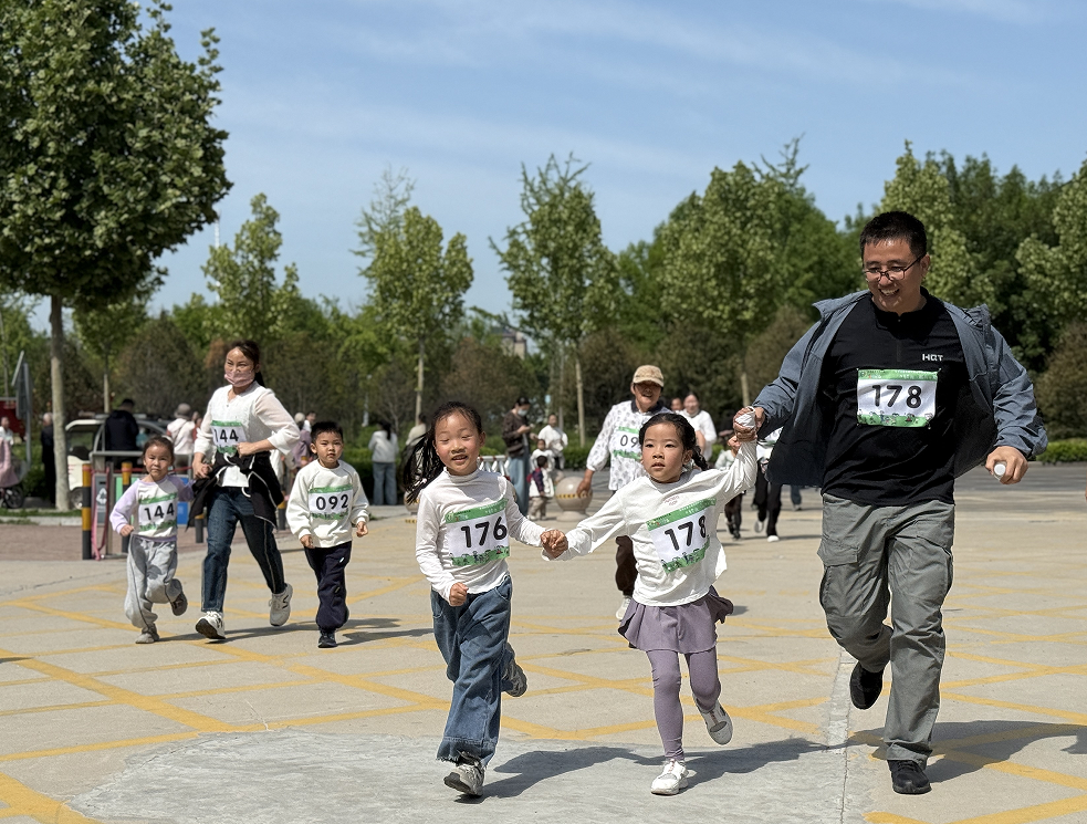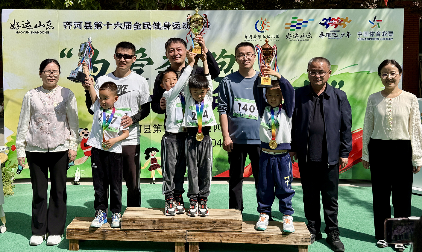 4月22日,“好运山东”齐河县第十六届全民健身运动会暨2026“为爱奔跑 一起向未来”第四届亲子欢乐跑在齐河县第五幼儿园鸣枪开跑。来自全县的400组亲子家庭参与活动。