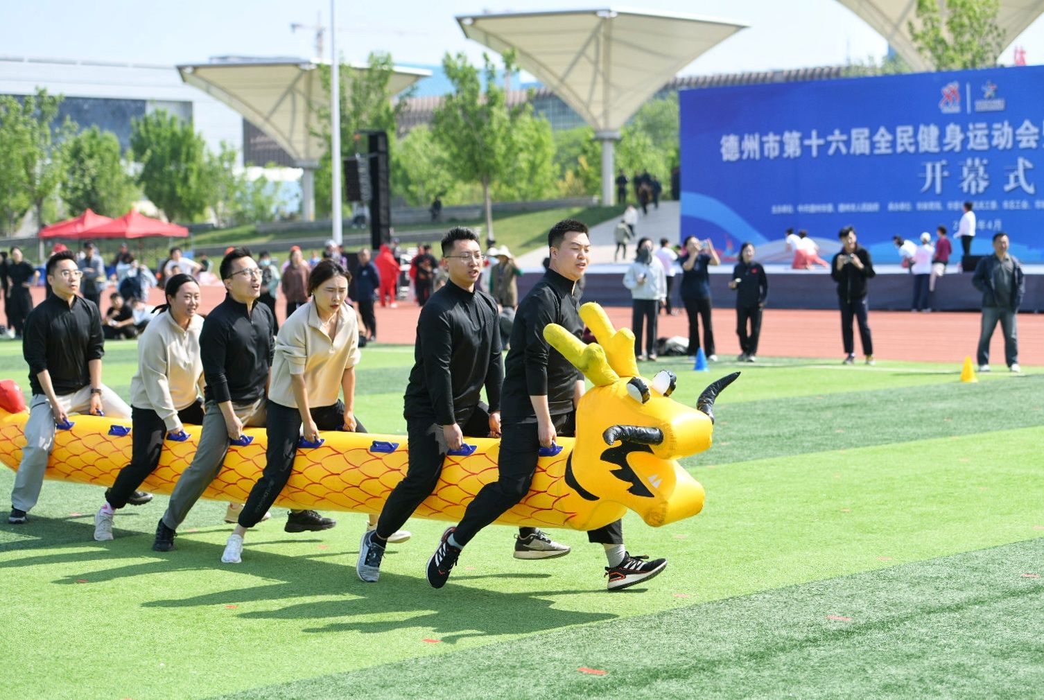 4月25日上午,德州市第十六届全民健身运动会暨2026全民健身节开幕式在市体育公园举行。市委副书记、市长朱开国宣布运动会开幕。市领导刘泮英、张泽中、陈晓强,市政府秘书长王胜强出席。