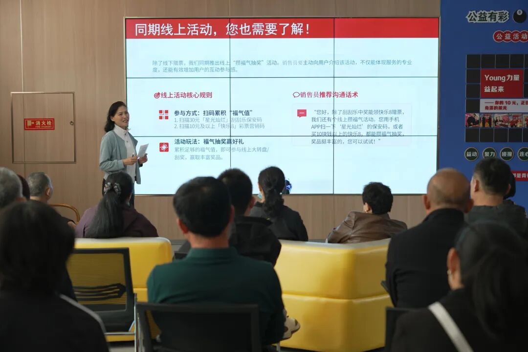 市民扫描同一张“星光灿烂”保安码及任意一张10元(含)以上“快乐8”彩票的营销码,即可累积“福气值”参与线上抽奖,有机会赢取华为手机、耳机等实用好礼。为了让一线代销者能清晰、准确地向购彩者介绍活动,培训还特别准备了相关的“推荐话术”。