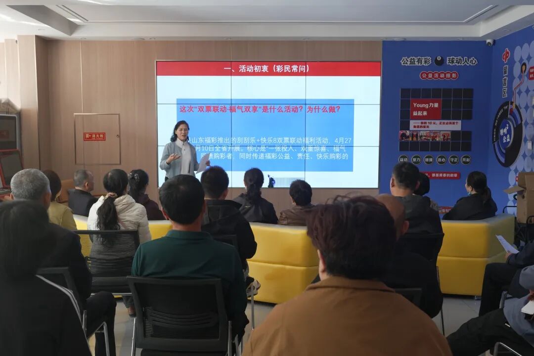“您看,这个活动最吸引彩友的就是‘一张投入、双重惊喜’。市民只要在站点购买30元的‘星光灿烂’刮刮乐,用手机APP一扫,就有可能再得到一张10元的快乐8赠票,线上线下都有奖可拿。”4月25日上午,在德州平原县福彩综合体验大厅,数十位来自城区各站点的彩票代销者正聚精会神地听着该县福彩配管员马静的专题讲解,背后的幻灯片清晰展示着“双票联动·福气双享”的参与流程和营销话术。一场场针对即将到来的“五一”购彩高峰的集中“充电”和动员会,在德州各县(市、区)福彩站点陆续举行。