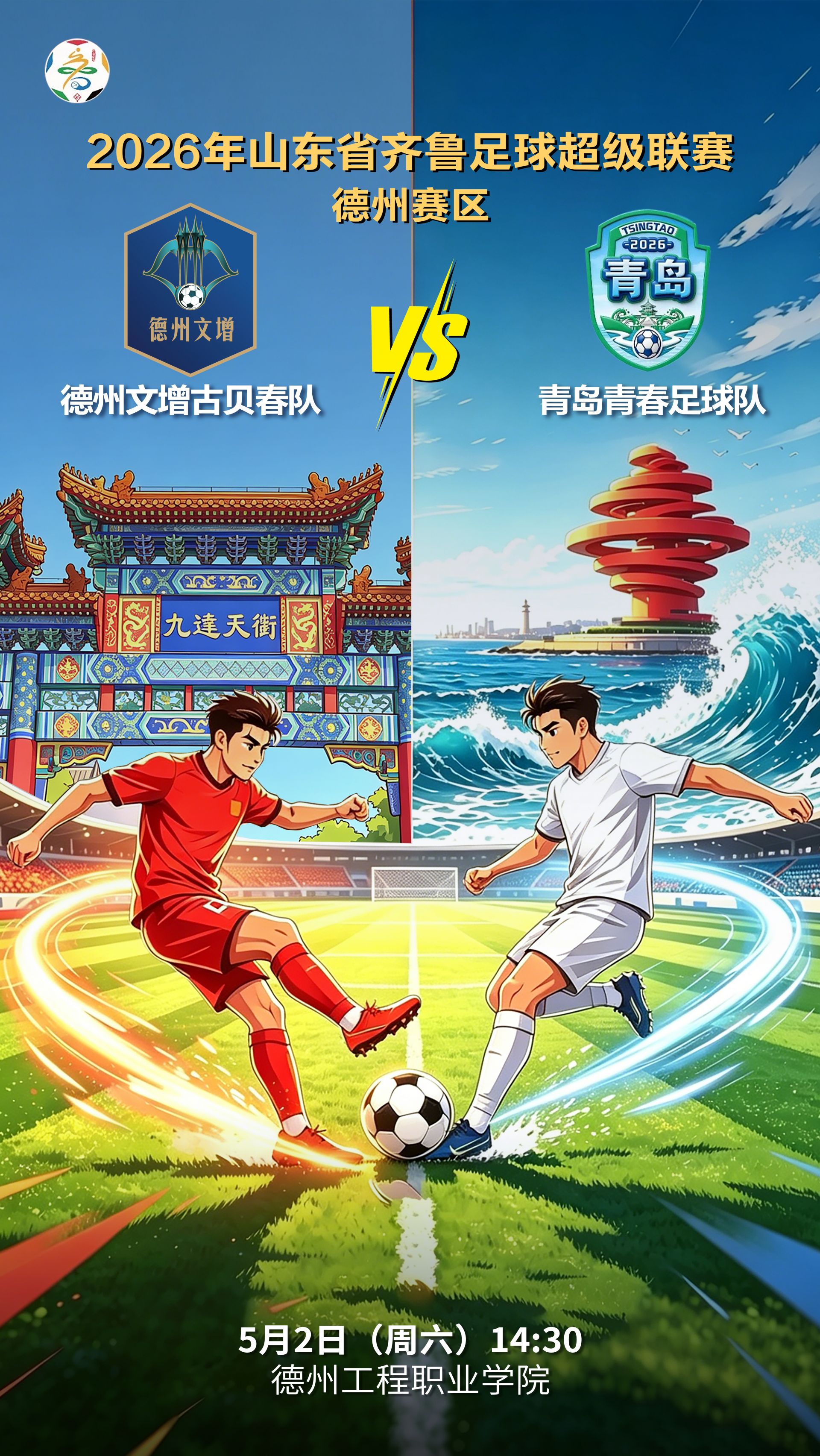 5月2日,2026年齐鲁超级联赛第二轮赛事开打,德州文增古贝春队将在主场德州工程职业学院足球场迎战青岛青春足球队。这是德州队在本赛季齐鲁超赛中的首个主场比赛,备受德州球迷期待。目前,本场比赛线上线下售票已同步启动,票价为10元。