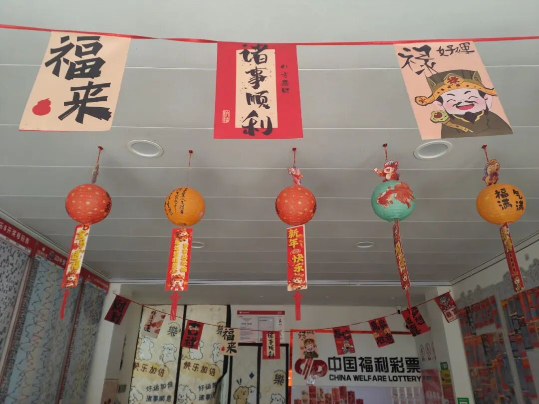 除了活灵活现的“招财猫”,店里还点缀着许多李双雪亲手制作的手工艺品:带有“喜相逢”标志的精巧水车、写满祝福的便利贴……这些细节让小店充满了文艺气息与生活情调。“小雪这人特别有生活品位,做的那些小玩意儿精致又喜庆,每次来都能收获一份好心情。感觉这儿不仅是彩票站,更像是个年轻人的解压馆。”一位经常光顾的小姐姐说道。