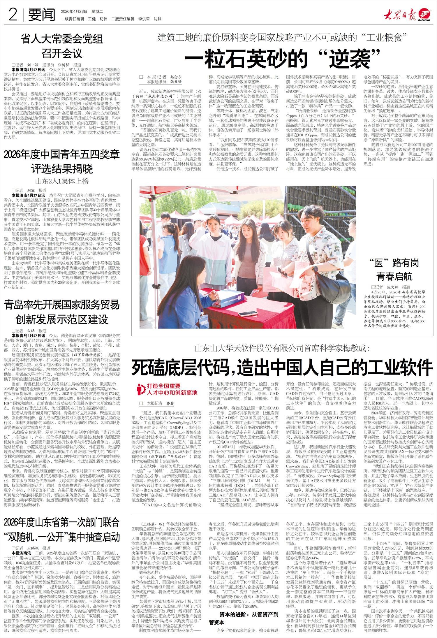“我们正在持续招引来自国内高校院所、科研机构的顶尖团队进驻工业软件大厦,并且打造了学术招商、生态吸引的创新业态,吸引了高端软件上下游及生态协同企业10余家,实现了‘产业园就是产业链、上下楼就是上下游’的聚集效应。”梅敬成说,这种科技创新与产业创新深度融合的生态体系,让更多创新成果从济南走向全国。