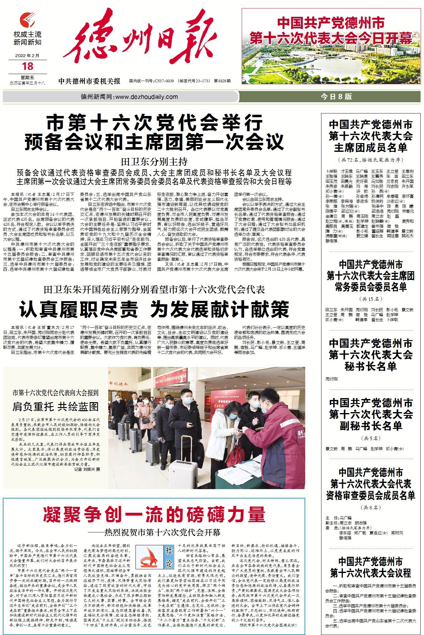 市第十六次党代会是在“两个一百年”奋斗目标的历史交汇点,德州昂首阔步争一流的关键时期,召开的一次砥砺奋进、继往开来的重要会议,是全市人民政治生活中的一件大事。开好这次党代会,对于我们深入贯彻落实习近平新时代中国特色社会主义思想,奋力践行习近平总书记“走在前列、全面开创”“三个走在前”重要指示要求,动员全市上下在加快建设新时代社会主义现代化强市的新征程上提振精神、铆足干劲,唯旗是夺、争创一流,具有十分重要的意义。