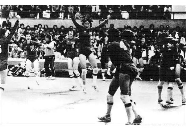1981年中国女排首次夺得世界冠军,中间跳起者为曹慧英。