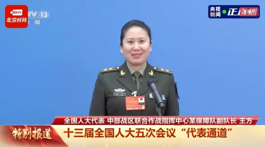 第十二届、十三届全国人大代表、中部战区某保障队副队长王方,蒙古族,任营连主官十年,被评为“全国巾帼建功标兵”。