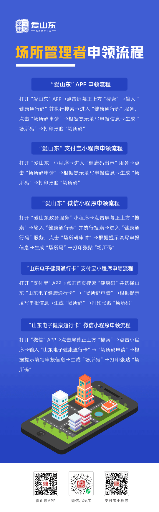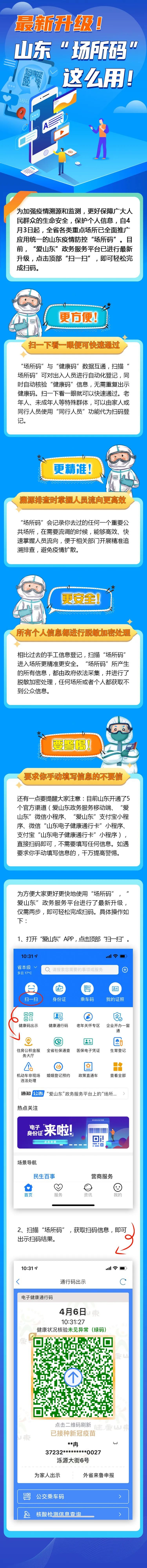 最新升级!山东“场所码”这么用! 2022-04-11 09:57 山东省大数据局 0 如果您是场所管理人员(单位管理员、负责人),也可以根据下面的提示通过“爱山东”政务服务平台申领并打印“场所码”。 德州日报新媒体出品来源|山东省大数据局 编辑|苗欣审核|张晓航 终审|朱代军