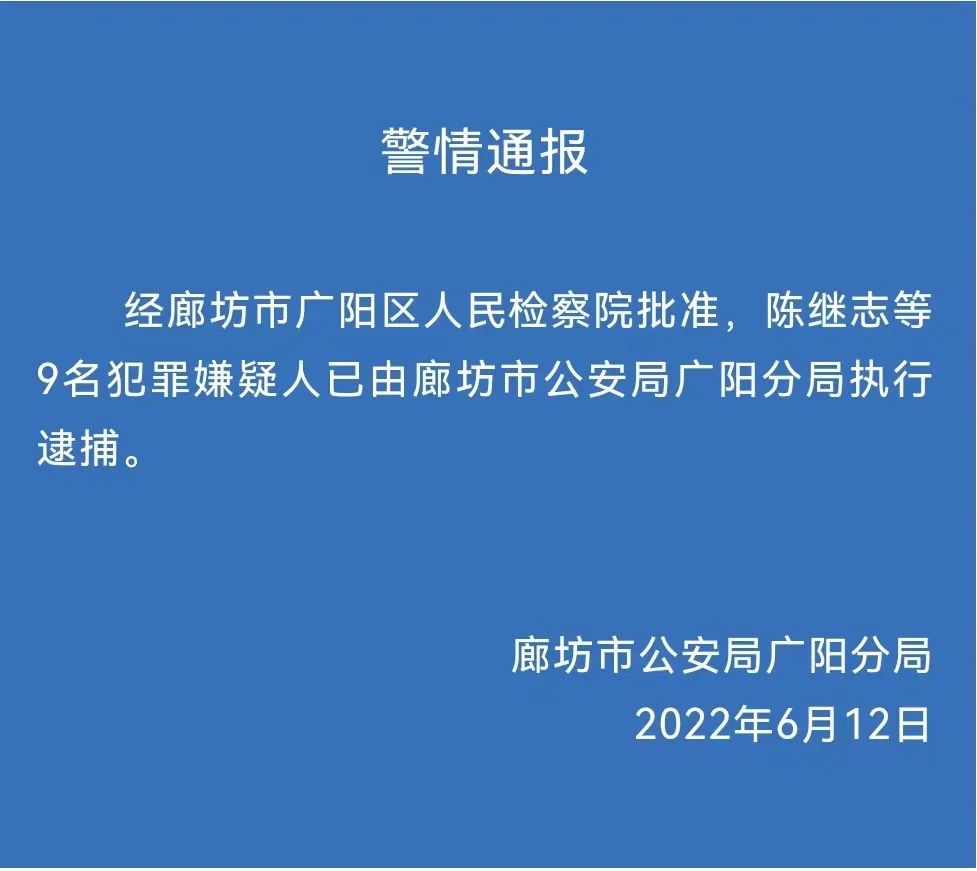 唐山打人案9名嫌犯已被廊坊警方逮捕