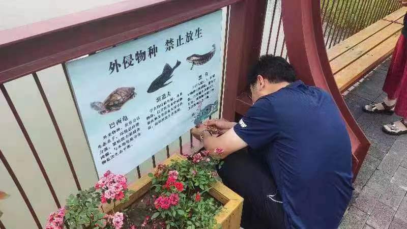近期,工作人员在巡查中发现有游客向月湖放生巴西龟、黑鱼,立即及时制止。巴西龟为外来入侵物种,为世界公认的生态杀手,环境适应能力强;黑鱼为区域外物种,可捕食其他水生物,繁殖能力强。擅自放生会极大的破坏月湖的生态平衡。为此,管理人员立即在湖边醒目位置制作并悬挂“外侵物种 禁止放生”告示牌,普及生态安全知识,同时加大巡查力度,及时劝阻行为发生。在此,我们向市民发出温馨提示:呵护生态和谐,切勿盲目放生。请大家共同维护好公园的良好生物多样和稳定性。