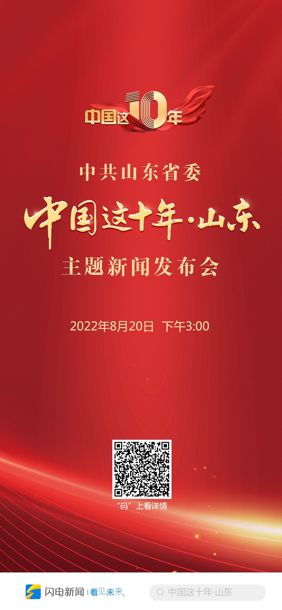 2022年8月20日(星期六)下午3:00举行“中国这十年·山东”主题新闻发布会,邀请省委省政府主要负责同志介绍党的十八大以来,山东经济社会发展各项事业取得的历史性成就、发生的历史性变革,以及全省人民牢记嘱托,奋力“走在前、开新局”的信心决心。齐鲁网、闪电新闻全程直播,敬请关注。