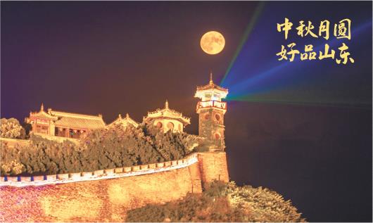 9月10日晚,烟台市蓬莱阁景区,一轮圆月高悬夜空。(□记者 从春龙 通讯员 谢滨 报道 )