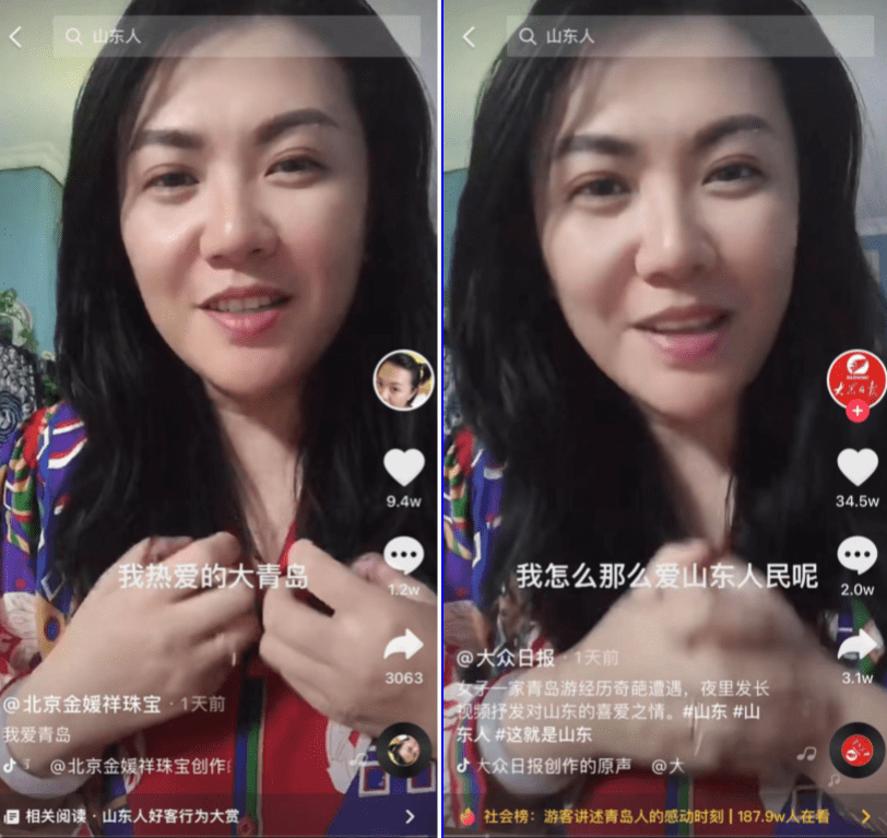 导游“泰山娟姐”,靠着讲解泰山景区文化的短视频,成为拥有150万粉丝的网络大V,短视频获赞1000万。
