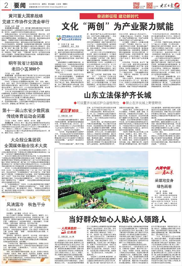 山东立足人文沃土可以深度耕作的比较优势,激活文化发展创新力,大力推动中华优秀传统文化创造性转化、创新性发展,全域推进“山东手造”工程,推动文旅融合高质量发展,持续释放文化产业发展的澎湃动能。2021年,全省规模以上文化企业实现营业收入6152.4亿元,比上年增长24.4%,高出全国8.4个百分点。文化产业已成为我省经济增长的新动力、新引擎,在满足人民美好生活需要方面发挥了重要作用。
