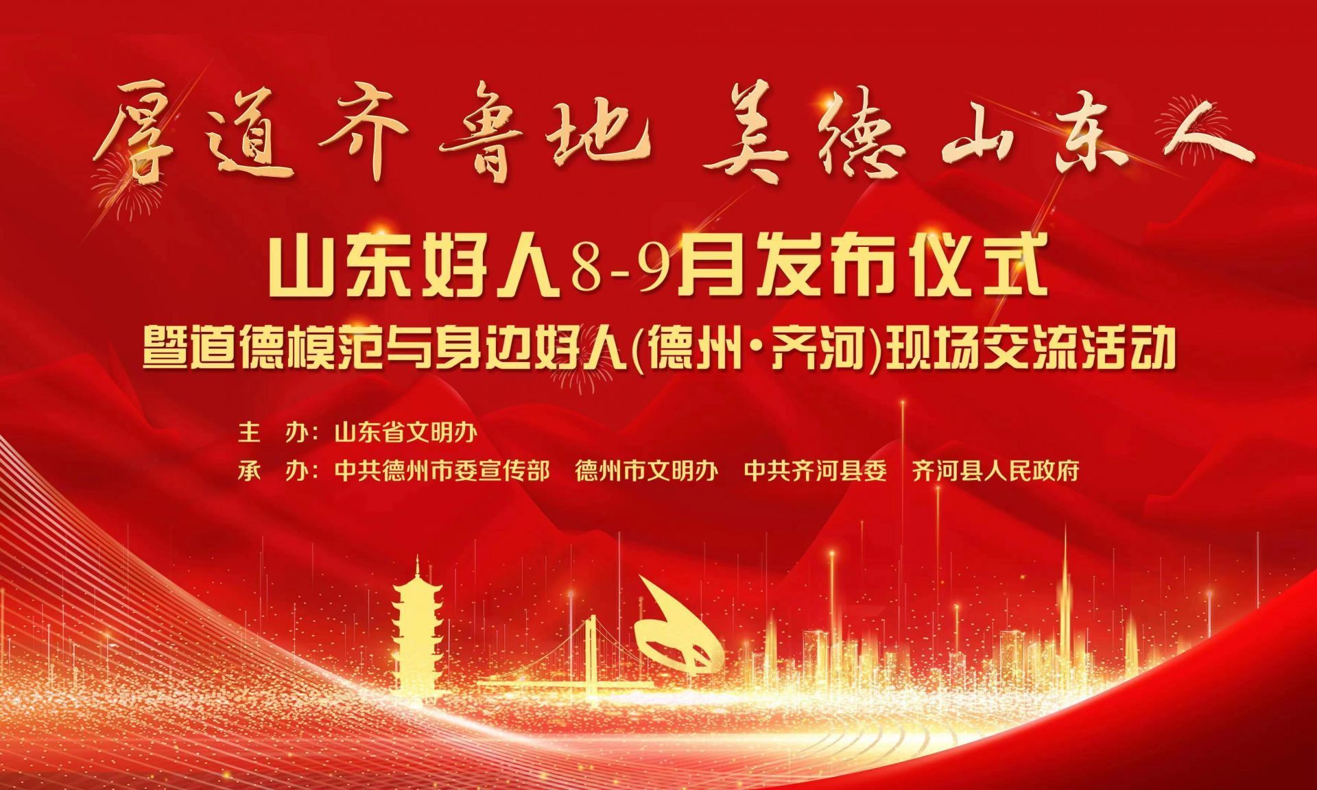 ▶ 今日17:15,“山东好人”8-9月发布仪式暨道德模范与身边好人(德州·齐河)现场交流活动将举行。(详情)
