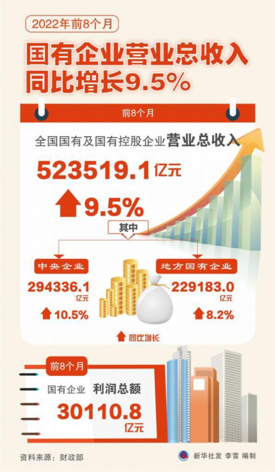 ▶ 前8个月国有企业营业总收入同比增长9.5%。