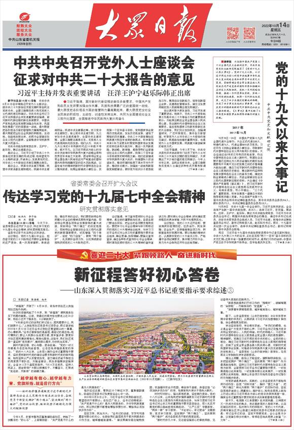 牢记初心使命,奋进复兴征程。党的二十大即将开启党和国家事业新的伟大篇章。让我们更加紧密地团结在以习近平同志为核心的党中央周围,切实把“两个确立”转化为坚决做到“两个维护”的行动自觉,答好新赶考路上的初心答卷,为实现中华民族伟大复兴作出山东新的更大贡献!