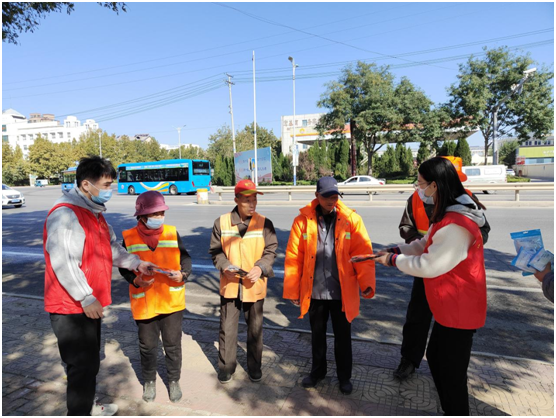活动中,志愿者们为外卖小哥及环卫工人送上包含口罩、手套等的贴心实用的“暖新小礼品”,同时为他们详细介绍了社区每一个“暖心蜂巢”服务驿站位置,及所提供的各项免费的服务,其中包含免费饮水、便民药箱、充电、临休、卫生间等。 同时,结合当前严峻的疫情形势,志愿者们也提醒他们注意出行安全,做好疫情防控措施,让新就业群体切实感受到党的关怀和温暖,进一步增强他们的社会归属感和职业自豪感。
