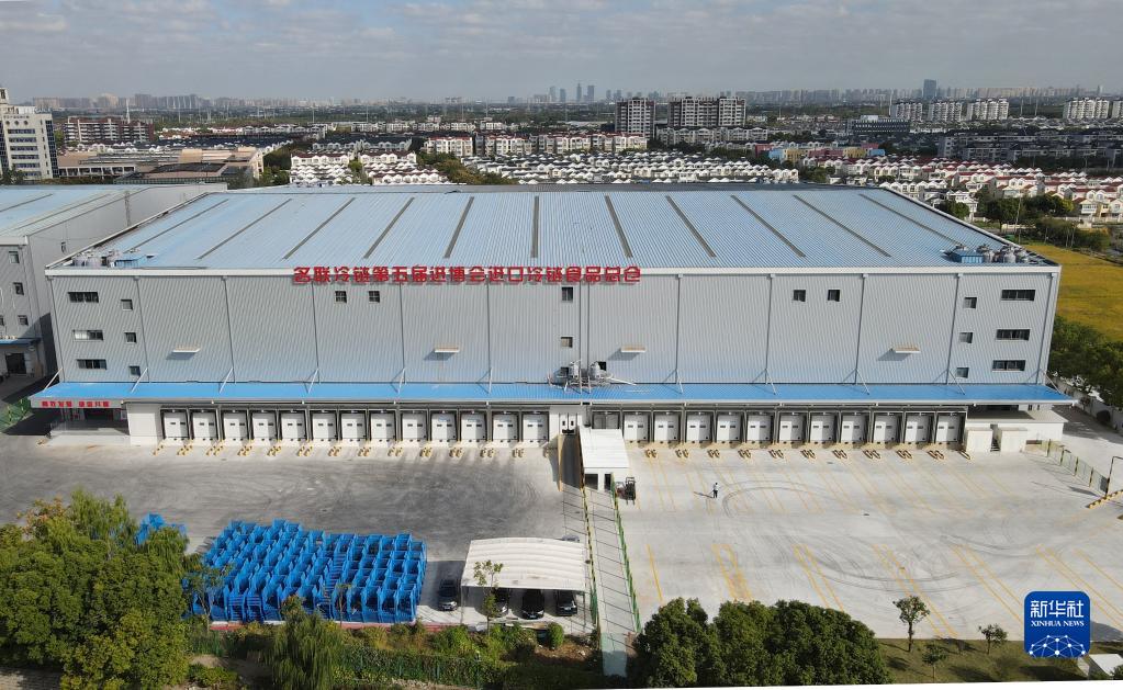 ▶ 第五届进博会首批进口冷链食品展品抵达总仓。
