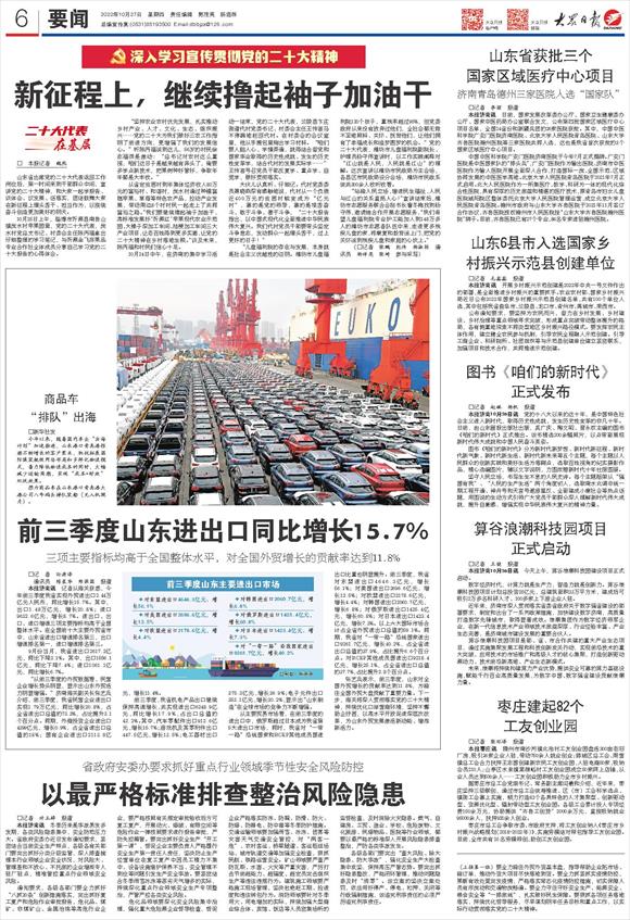 山东省出席党的二十大代表返回工作岗位后,第一时间来到干部群众中间,宣讲党的二十大精神,和大家一起学报告、谈体会、议发展、话落实,团结鼓舞大家在新征程上埋头苦干、担当作为,以接续奋斗创造更加美好的明天。