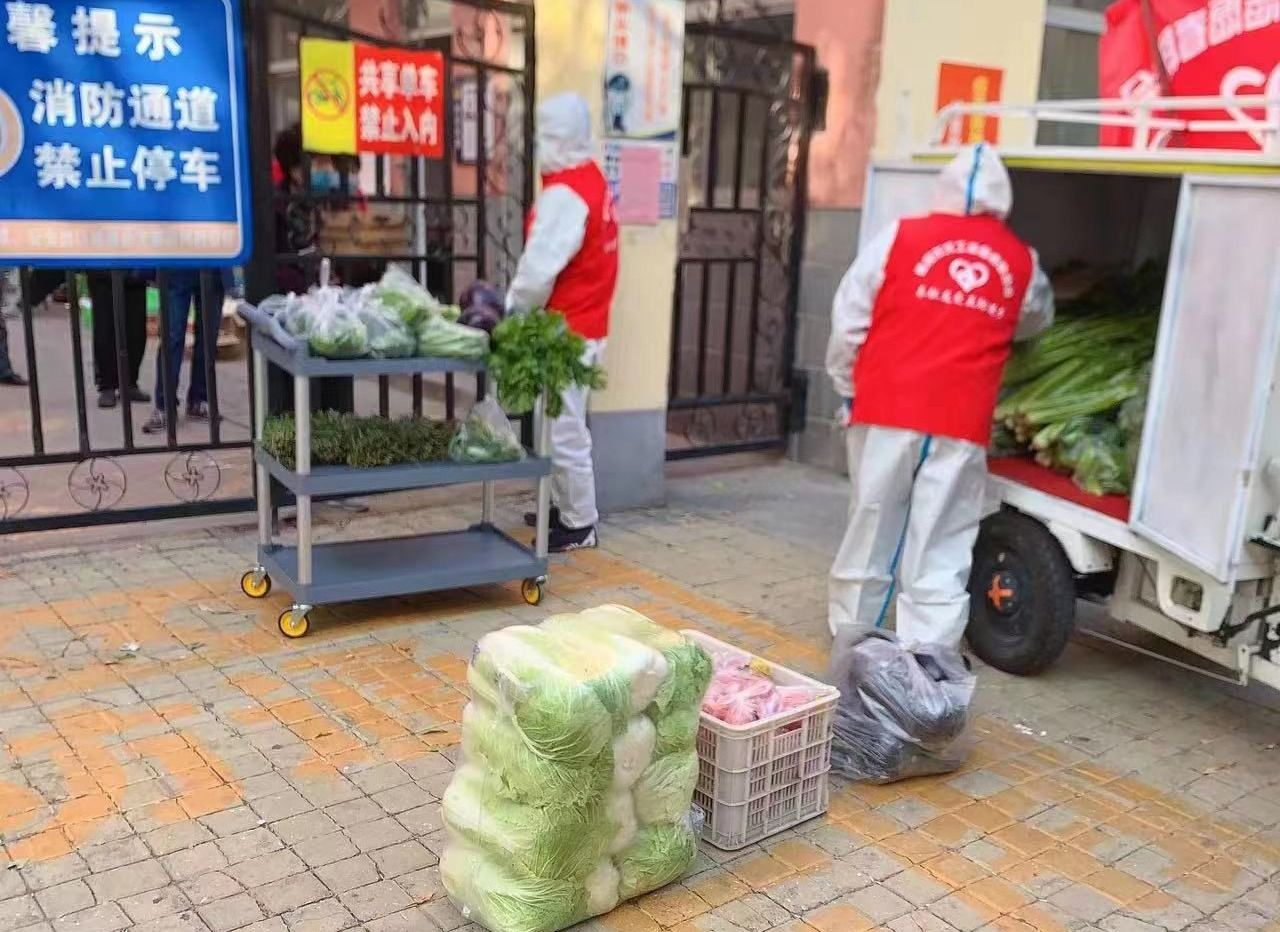 “这是您要的黄瓜、菜花、芹菜,请拿好。”11月1日8点左右,在德城区青龙潭小区门外,市义工志愿者联合会的义工志愿者郑为民变身“大白”卖起了蔬菜。