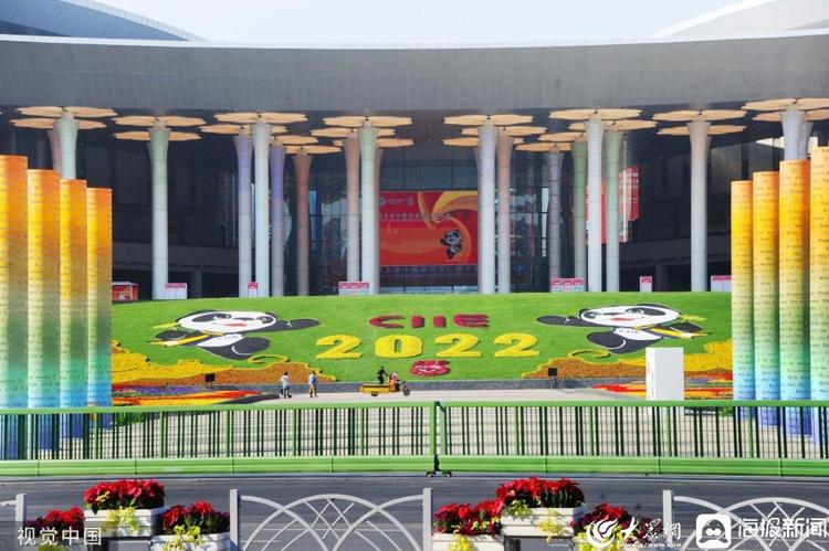 2022年10月24日,上海,第五届中国国际进口博览会临近开幕,作为主场馆门面担当的国家会展中心(上海)南广场,绿化已全面布置完成,静待盛会启幕。