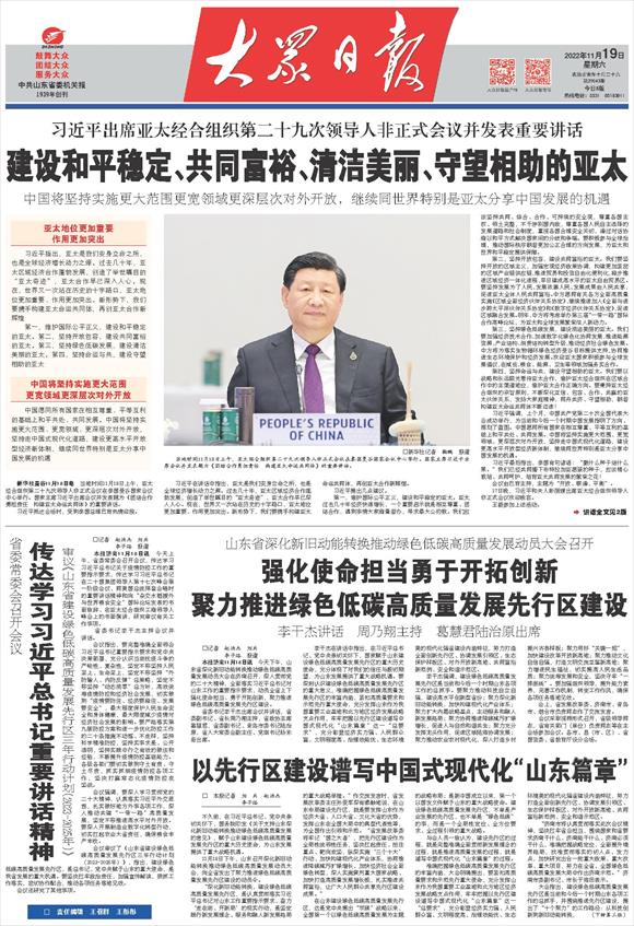 11月18日下午,山东召开深化新旧动能转换推动绿色低碳高质量发展动员大会,向全省发出了聚力推进绿色低碳高质量发展先行区建设的动员令。