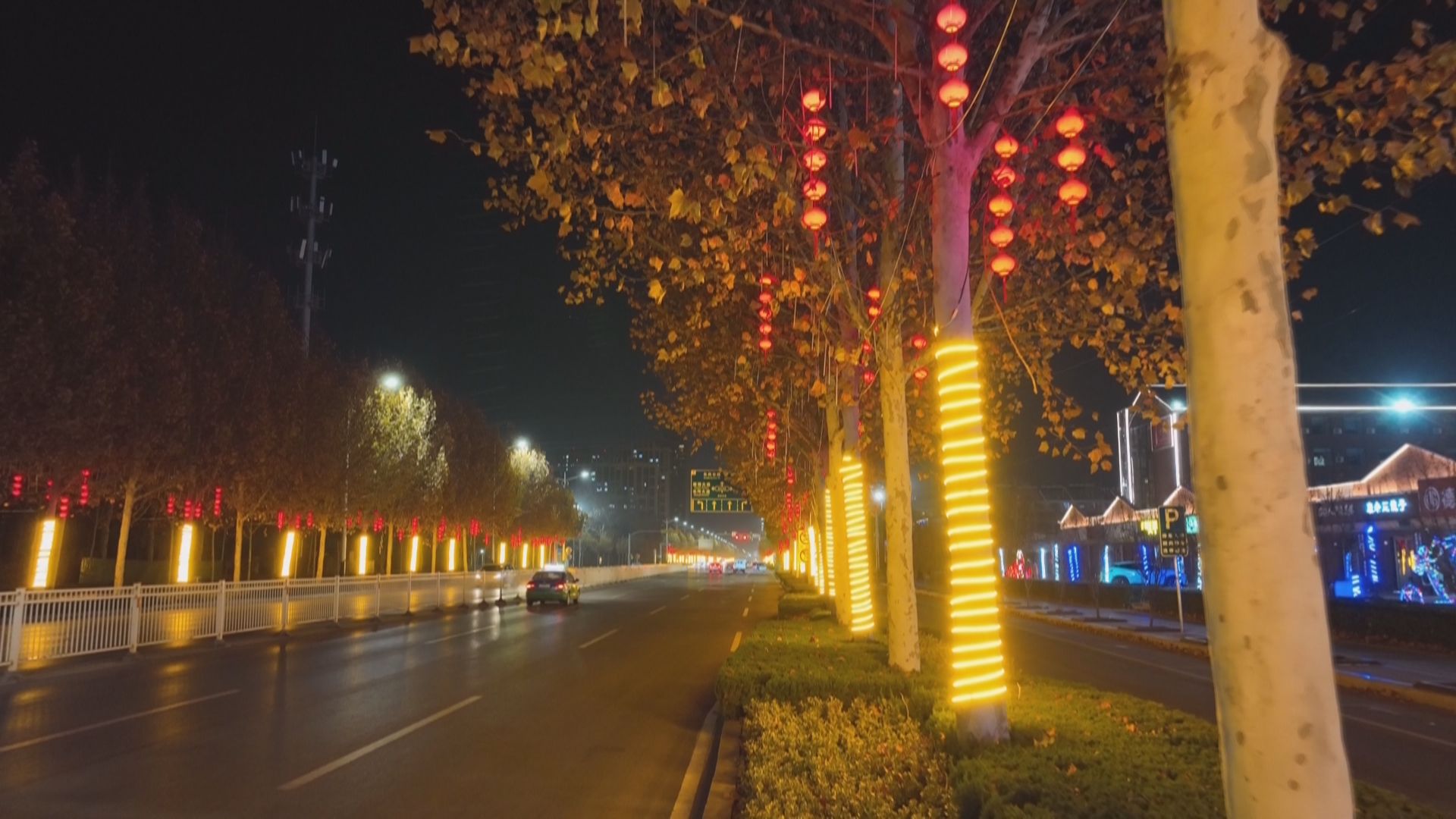 12月5日晚上6点,德州天衢新区晶华大道(东风路—太阳湖路)两侧行道树亮起了暖黄色的灯光,在一串串红灯笼的映衬下,呈现出一派幸福祥和的美丽夜景。