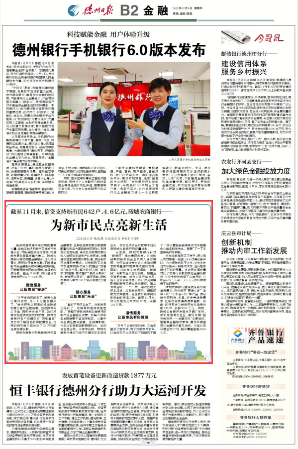 新市民是城镇未来发展的重要力量,让越来越多的新市民在城市安居乐业,对畅通国民经济循环、构建新发展格局具有重大意义。陵城农商银行持续完善金融服务,优化办贷模式,积极践行普惠金融,不断提高新市民金融服务的可得性和便利性,不断增强新市民的获得感、幸福感和满足感。截至11月末,该行信贷支持新市民642户、4.6亿元。