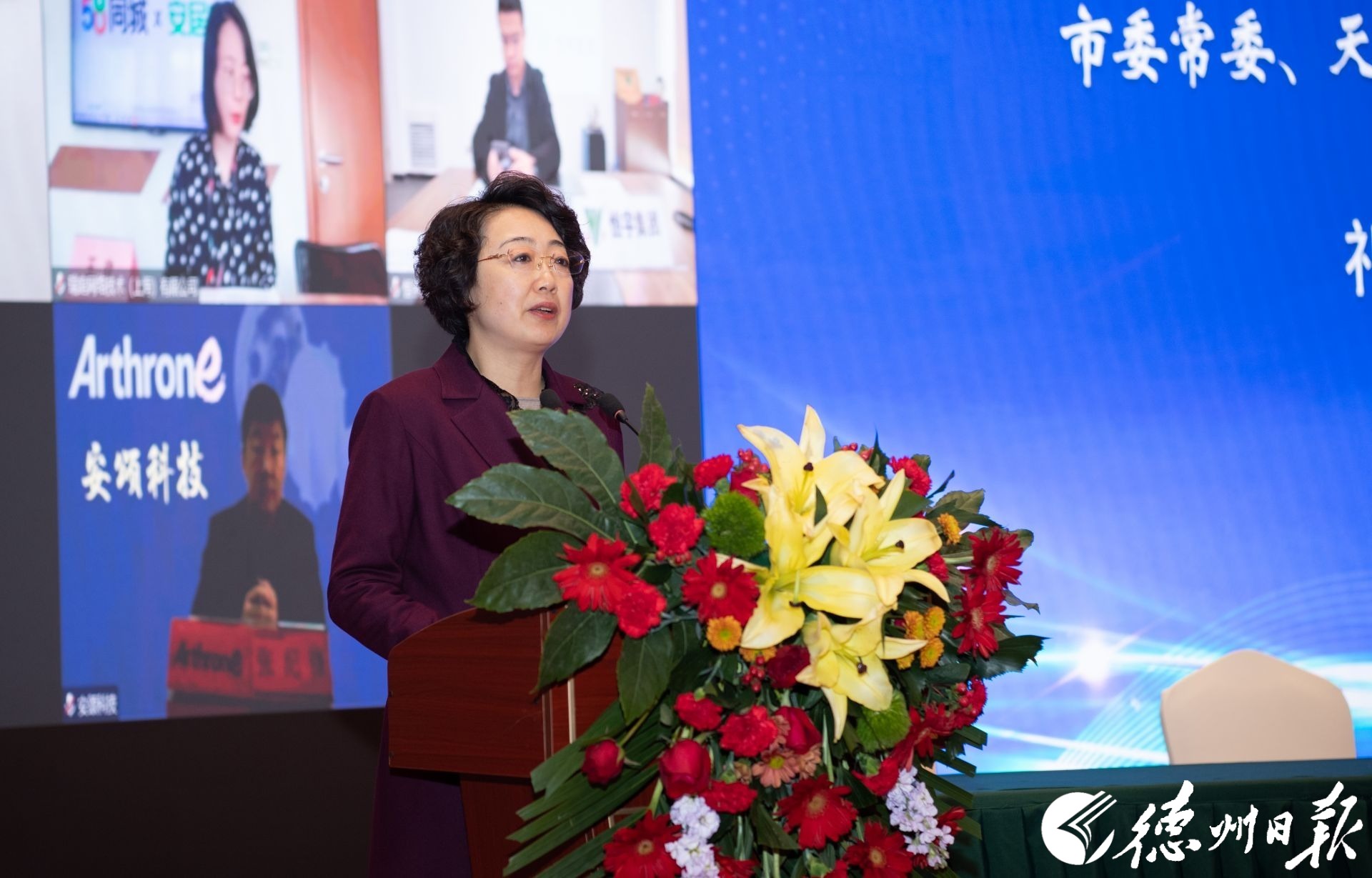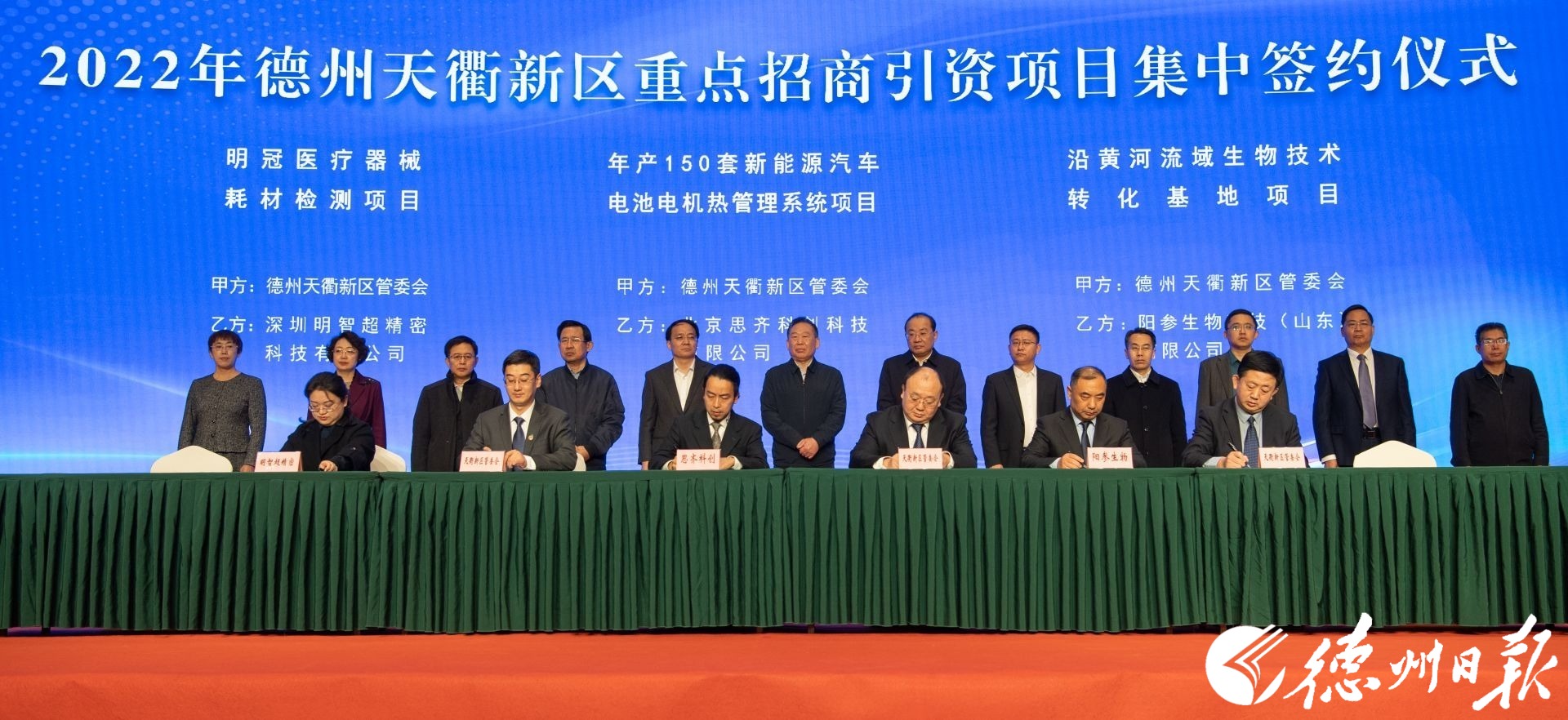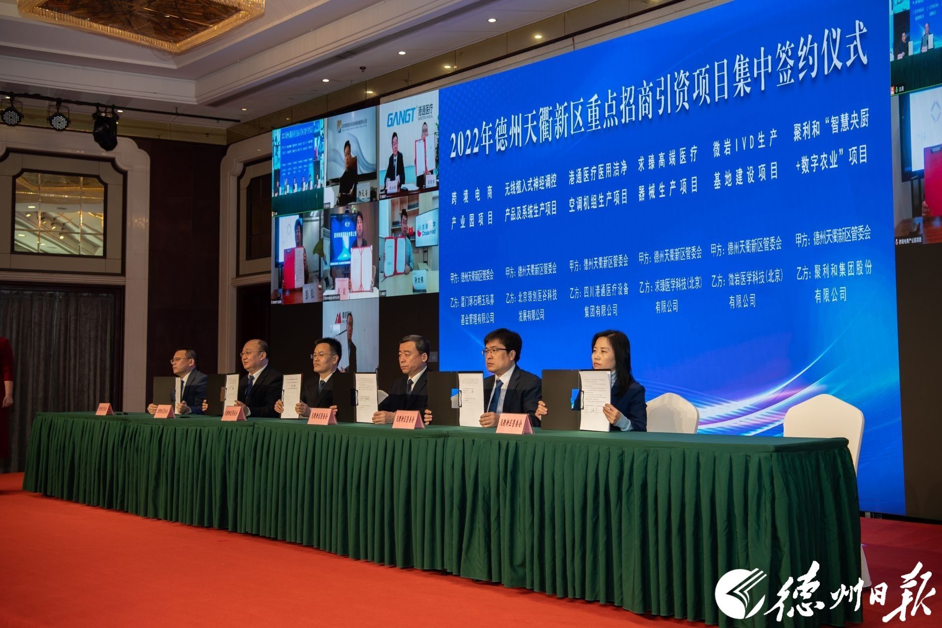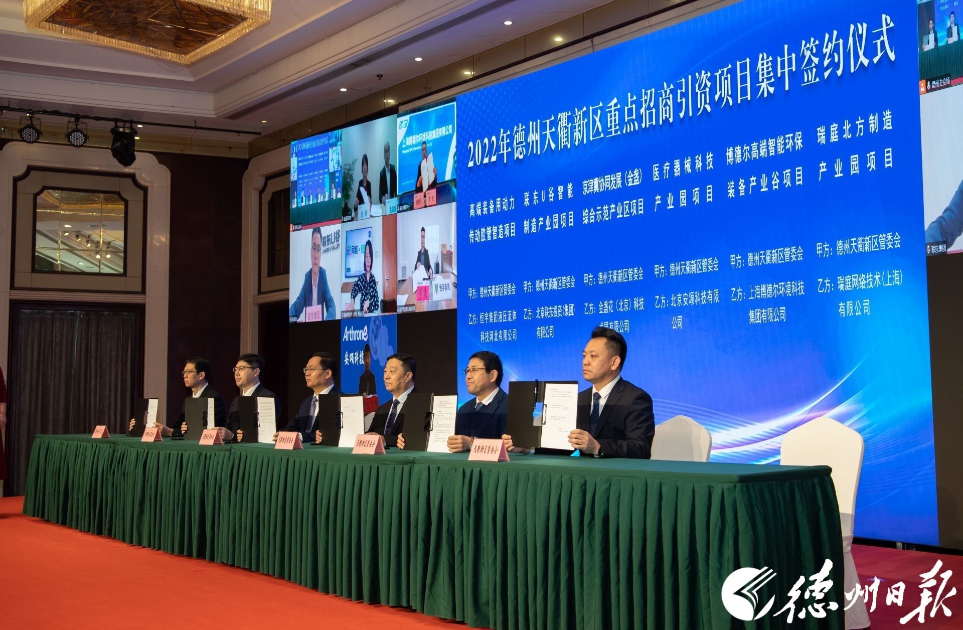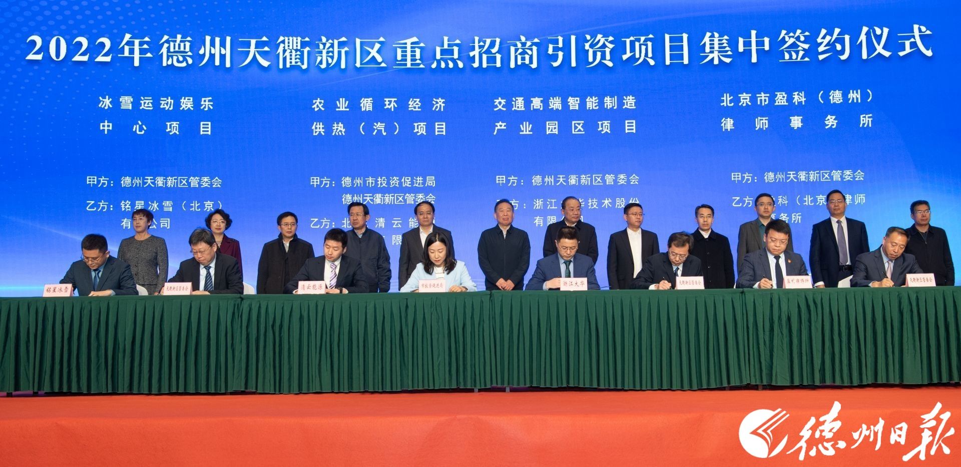 12月9日,德州天衢新区举行2022年重点招商项目集中签约仪式。山东省稳住经济基本盘督导服务德州组组长,省政协副主席王修林,市委书记田卫东,市委副书记、市长朱开国,省新旧动能转换综合试验区建设办公室副主任王海林,省派德州市“四进”工作总队总队长陈继梦,市委常委、秘书长赵学坤,市委常委、天衢新区党工委书记祁小青出席活动。来自北京、上海等地的部分重要嘉宾,通过线上形式参加了签约仪式。