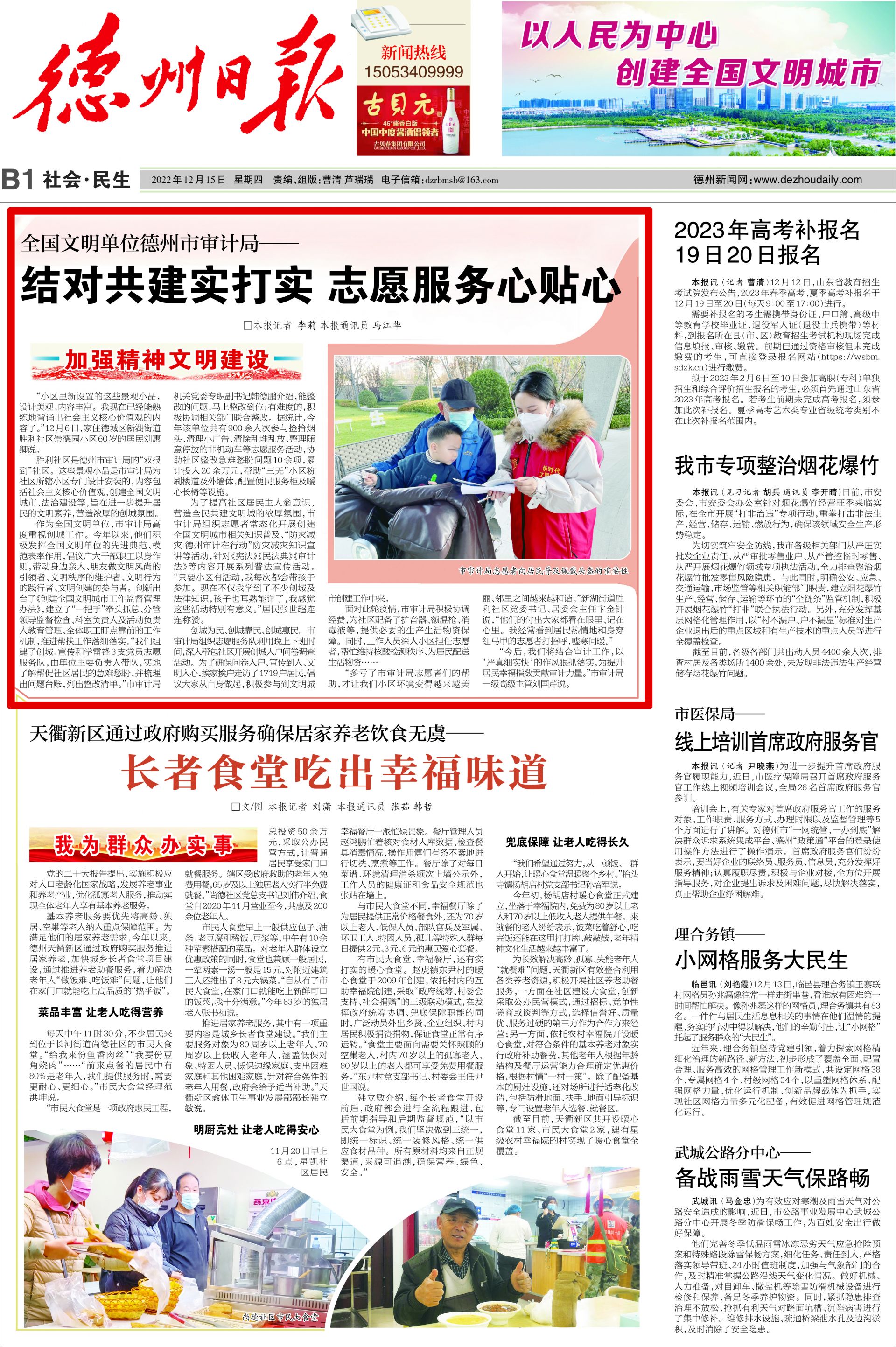 “今后,我们将结合审计工作,以‘严真细实快’的作风狠抓落实,为提升居民幸福指数贡献审计力量。”市审计局一级高级主管刘国芹说。