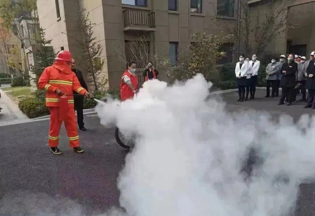 参与演练的居民全部安全疏散完毕后,消防安全专业人士向社区居民讲解防火要领、安全消防常识、如何扑救初期火灾及消防水带、灭火器的使用方法等,并现场演示如何用灭火器进行灭火,还一一让居民亲手操作实践,真正掌握防火、减灾自救技能。