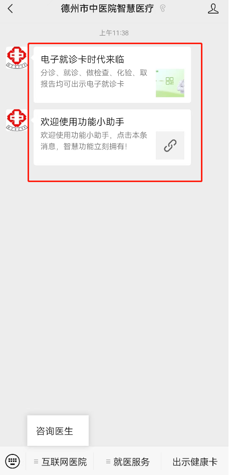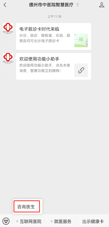 长按识别二维码关注“德州市中医院智慧医疗”微信公众号发起线上问诊。