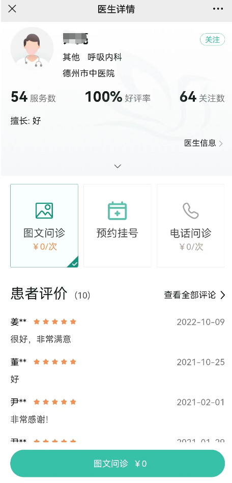 点击想要咨询的医生,点击“图文咨询”,描述详细病情后,录入要问诊的信息,还可以上传图片,提交问诊后,医生会尽快处理您的问诊,如30分钟内医生因工作原因未能接诊,系统会自动推荐本科室其他医生,患者可以选择继续等待或转诊。