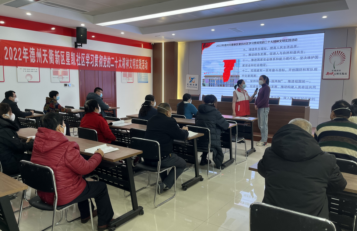 为深入学习贯彻党的二十大精神,引导广大群众切实将思想和行动统一到党的二十大精神上来,近日,星凯社区组织社区党员、辖区居民及社区干部,在新时代文明实践站,举办学习贯彻党的二十大精神“天衢新声”宣讲进社区活动。